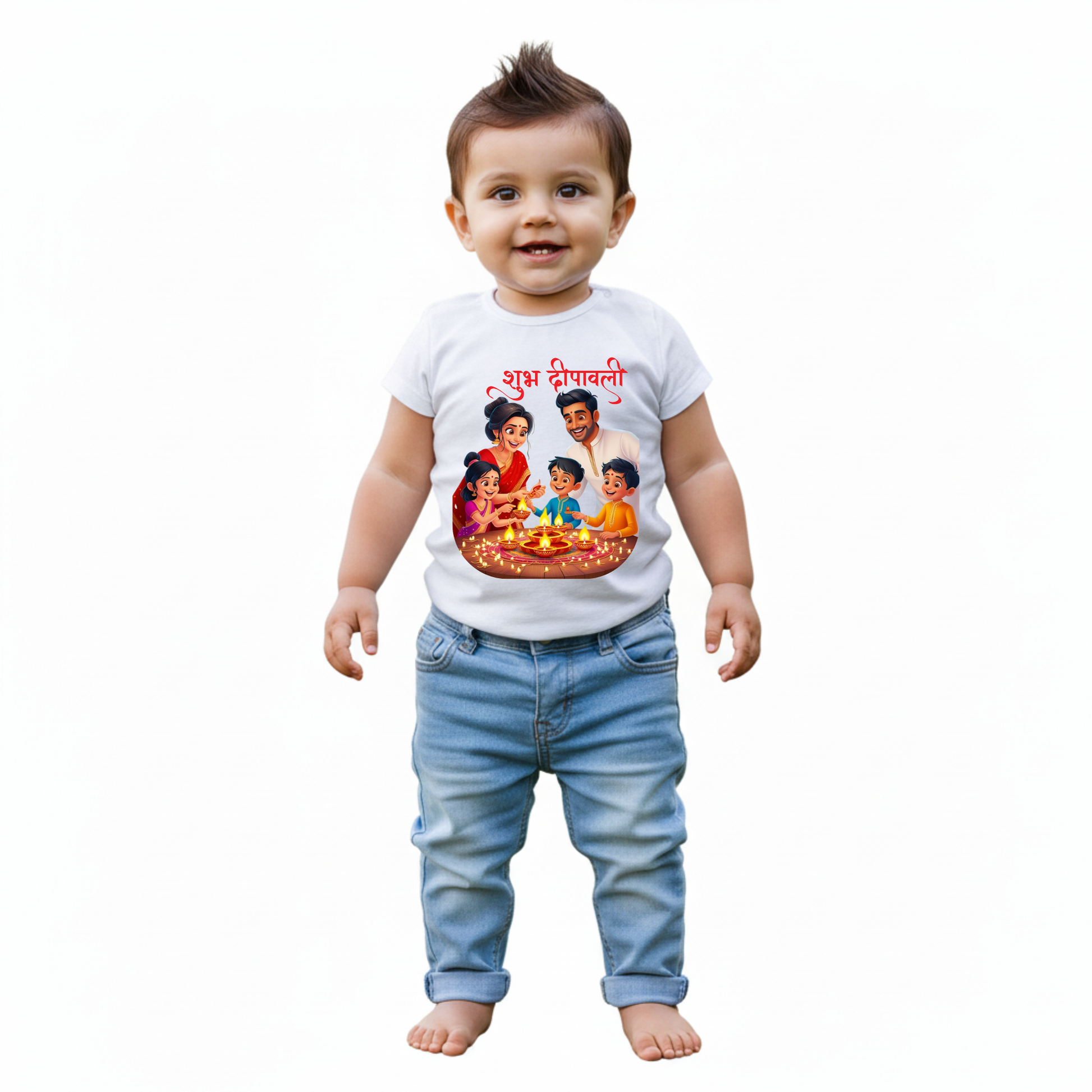 Baby's White Infant T-shirt with Printed a "Subh Deepawali" Design