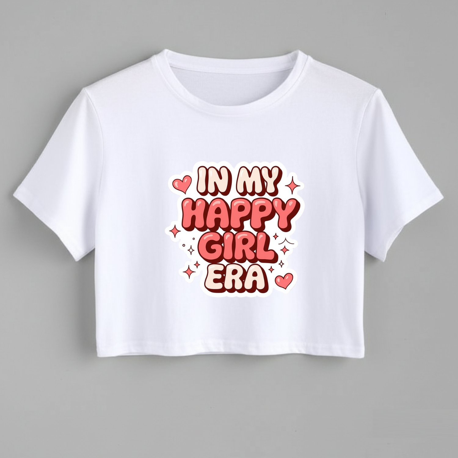 Celebrate your joy with this comfortable crop top featuring the uplifting phrase "In My Happy Girl Era." Designed to brighten your day and inspire positivity, it pairs easily with your favorite outfits for a casual, confident look. Made for those who embrace happiness and self-expression with style.
