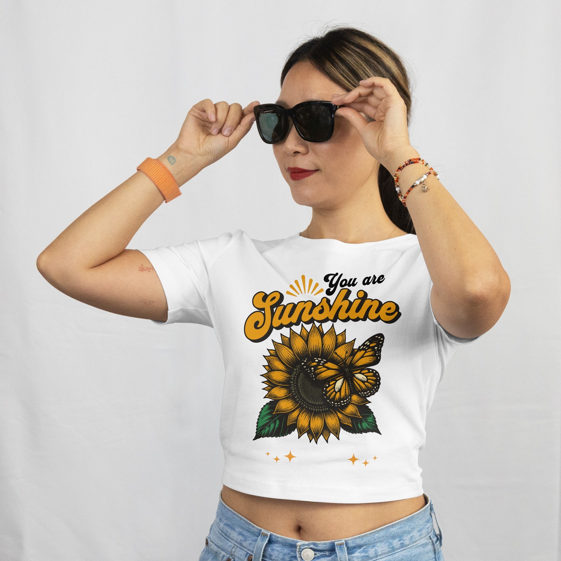 Embrace good vibes and effortless style in this super-soft crop top featuring a positive message and a vibrant sunflower design.