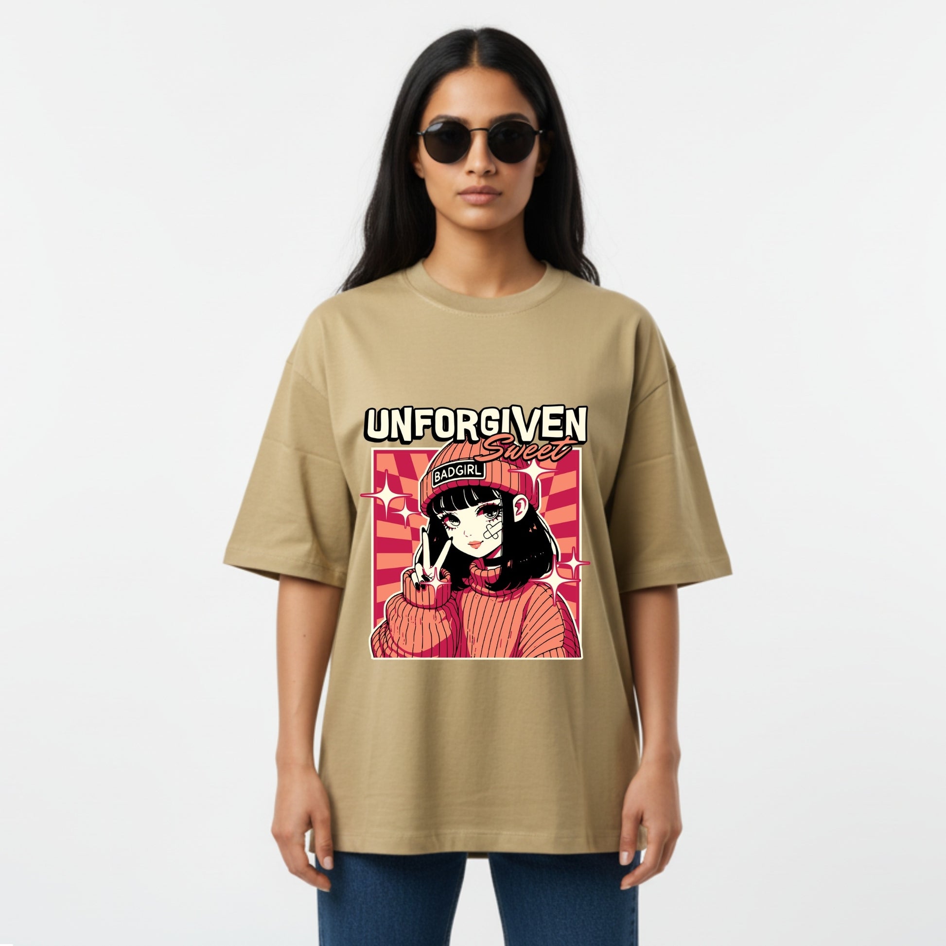 WoMen's Oversized T-Shirt With "Unforgiven" Printed